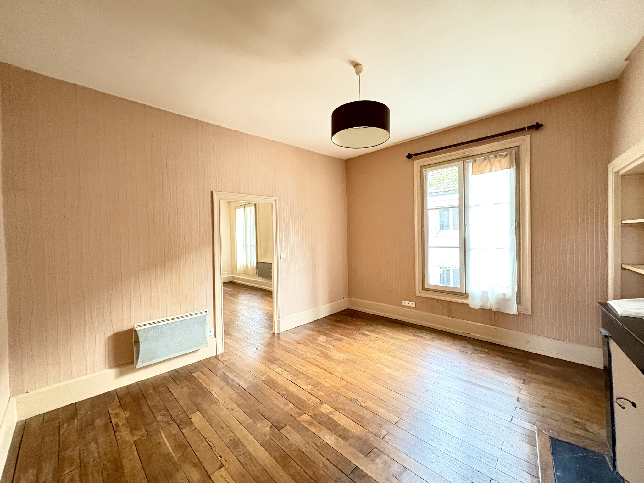 Au 2ème étage, appartement de type III comprenant: Entrée-dégagement, séjour avec cheminée, cuisine séparée aménagée, deux chambres avec placards, salle de bains avec wc.