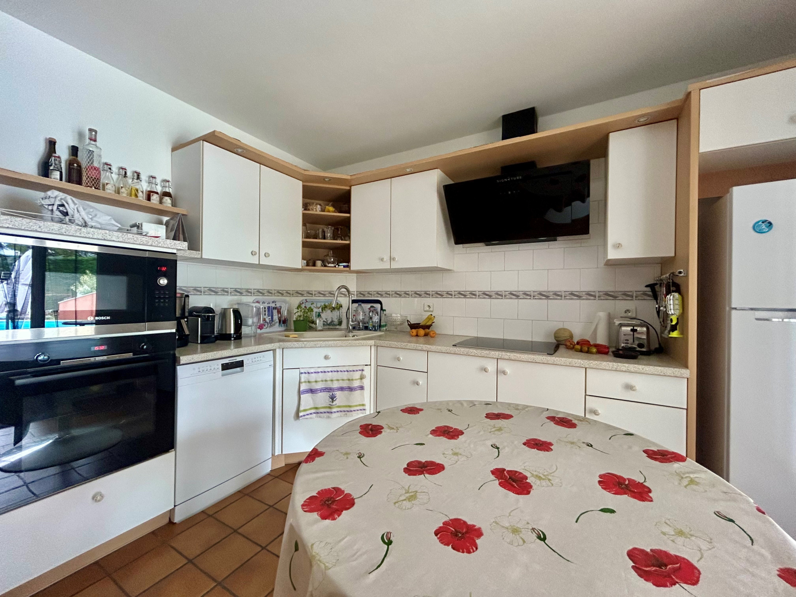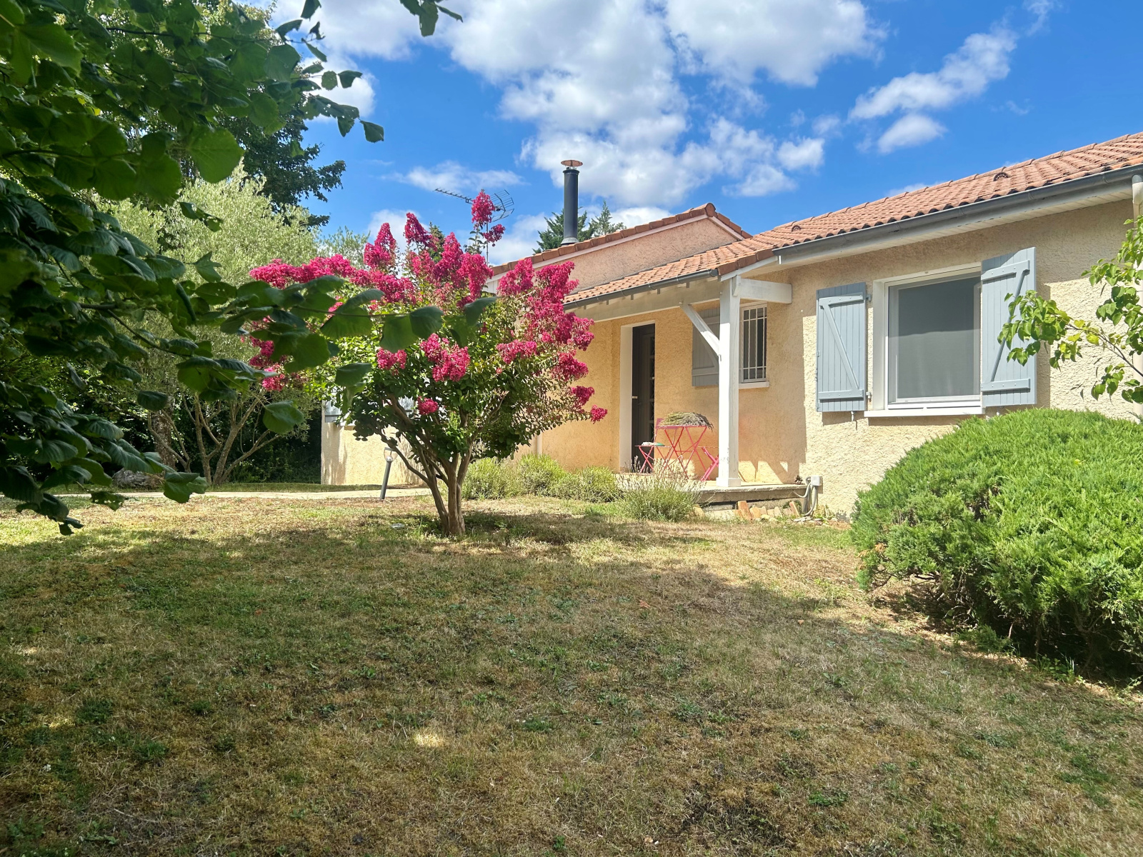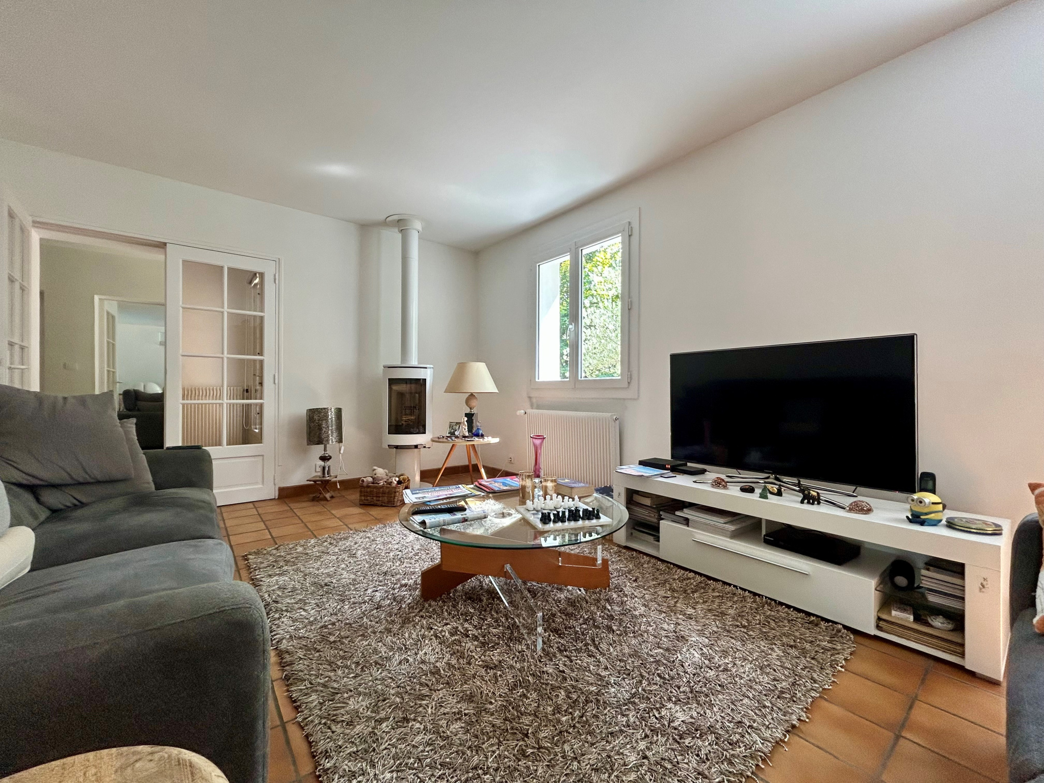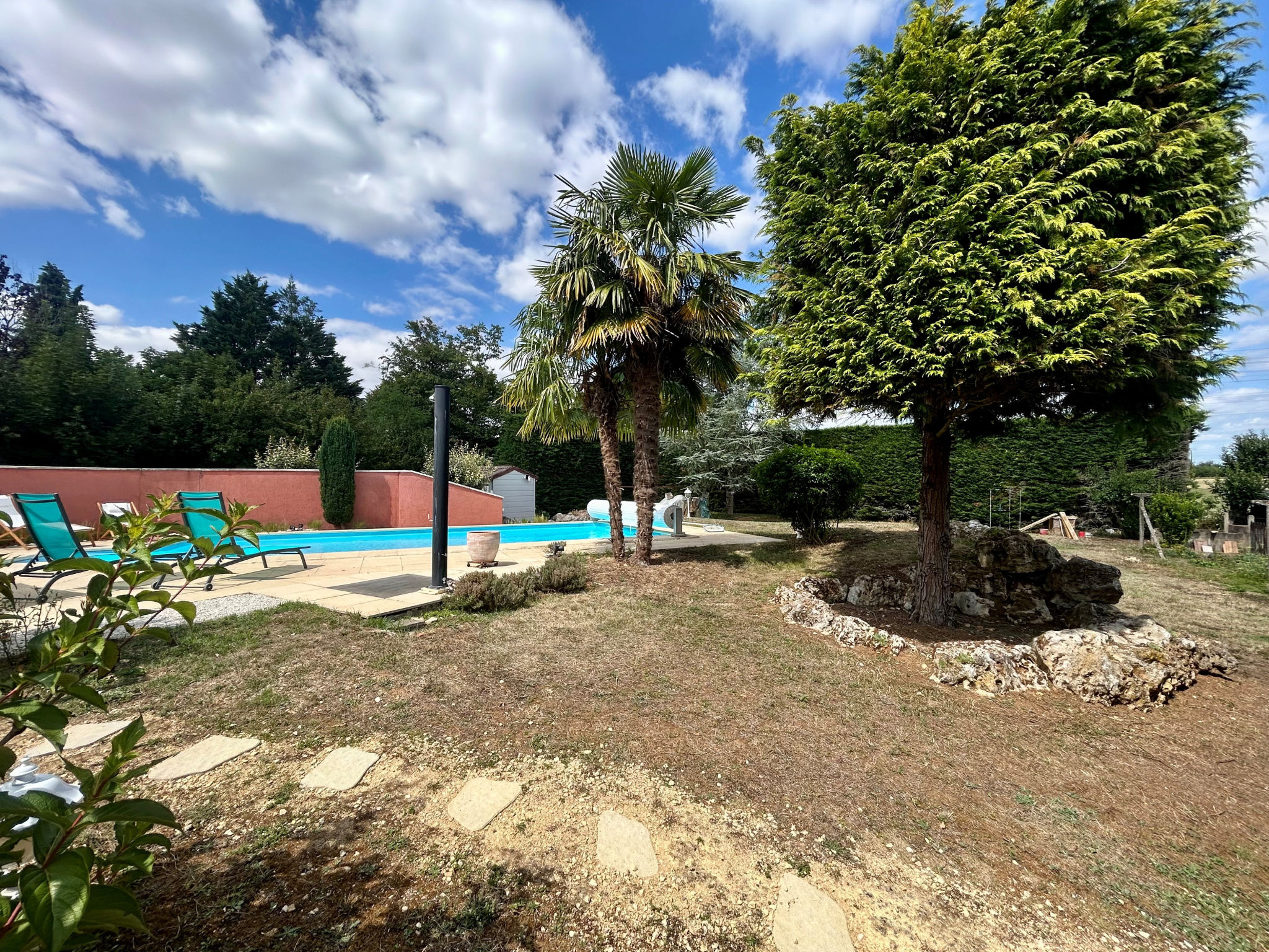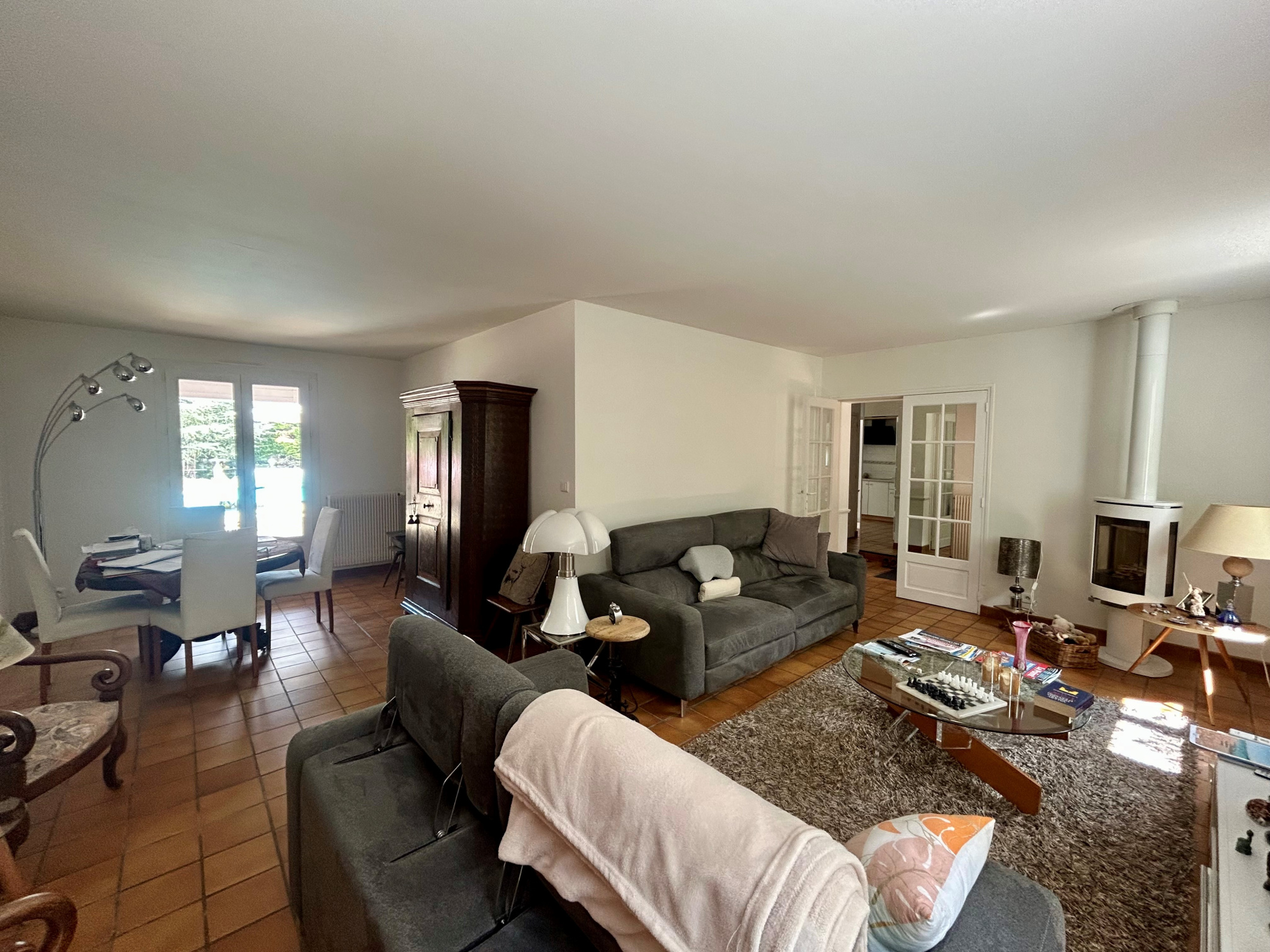 Maison d'habitation comprenant de plain pied : Hall d'entrée, ensemble salle à manger - salon avec poêle à bois, cuisine aménagée et équipée avec espace repas, dégagement, salle de bains, trois chambres. Au sous-sol : Vaste garage avec remise, buanderie-lingerie avec wc et douche, une pièce. L'ensemble sur un terrain d'une superficie de 2 057 m² environ agrémenté de terrasses et d'une piscine. Les informations sur les risques auxquels ce bien est exposé sont disponibles sur le site Géorisques : https://www.georisques.gouv.fr/ .
